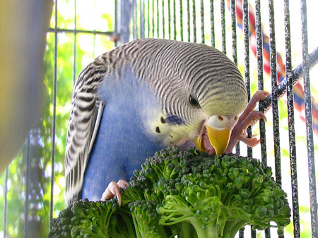 Always feed your budgie fresh quality seed and waterwhich is replaced daily. Your budgie should be given a piece of Cuttlebone which will help file its beak and provide calcium . Budgies will also eat Millet Sprays and Seedbells as well as some vegetables and fruits.